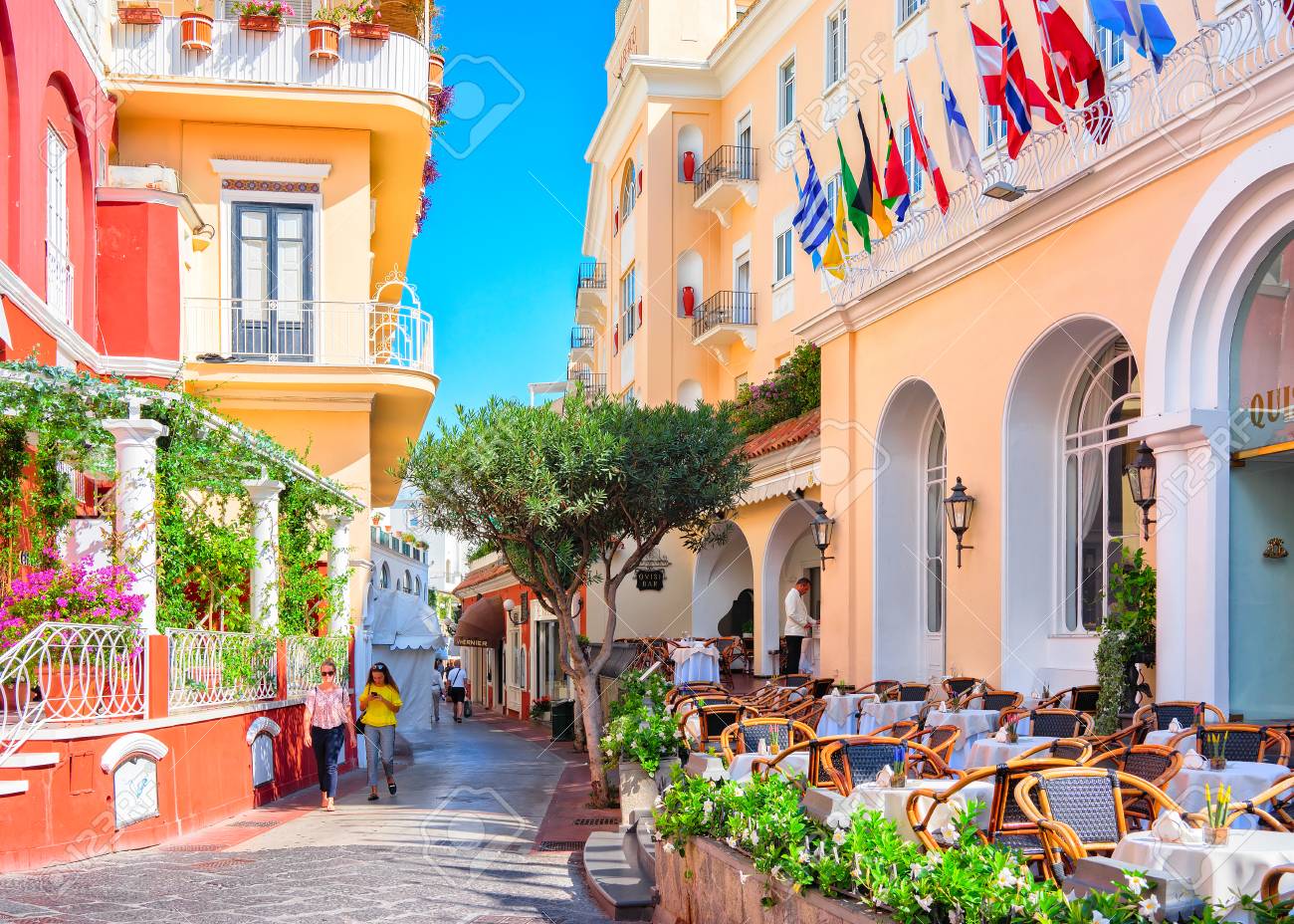 Capri Italy October 3 2017 Tourists At Street Cafes On Capri Island Italy Stock Photo Picture And Royalty Free Image Image 91487849